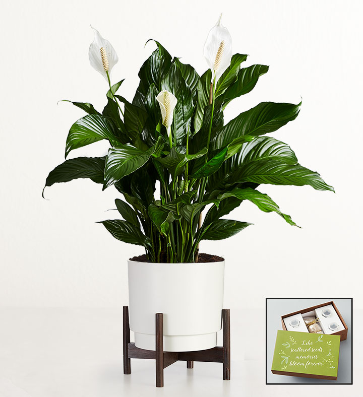 GROWN IN THE USA When it’s hard to find the right words, a comforting gesture can bring peace at a difficult time. Featuring white blooms with lush, green leaves, our peace lily is a thoughtful gift of remembrance when they need it most.